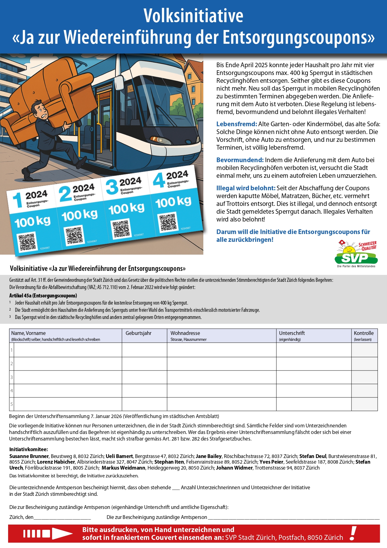 SVP Stadt Zürich, Postfach, 8050 Zürich